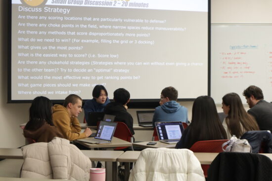 On December 11th, Team Neutrino hosted a mock kickoff meeting to prepare team members for the upcoming 2026 FRC season. Students were first split into groups to analyze parts of the 2020 Infinite Recharge game manual. The information each group considered most important from their respective sections was then put into lists for the other groups to see and understand. The students then conversed within their groups about strategy for the Infinite Recharge game based on the information they learned. They answered questions about point scoring, arena maneuvering vulnerability, and more. Based on their answers to the questions, the team members came together and decided on needs, want, nice-to-haves, and no’s in their strategy for the 2020 game. Together, they had fun, discussed different possibilities for strategy, and developed a better understanding of how Team Neutrino’s real kickoff day will look like in January.