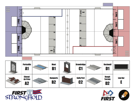 Team Neutrino creates a strategy sheet to help plan and prepare for matches with alliance partners. The 2016 sheet is available below. We laminated our sheet and put it on a whiteboard. The defenses were printed and glued on to magnets so that they could be rearranged. We could write and draw our plan with a dry erase marker.